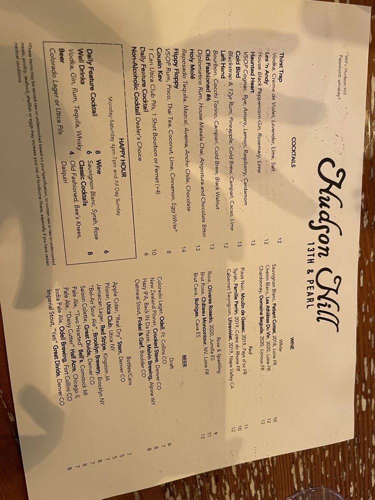 Hudson Hill Menu
